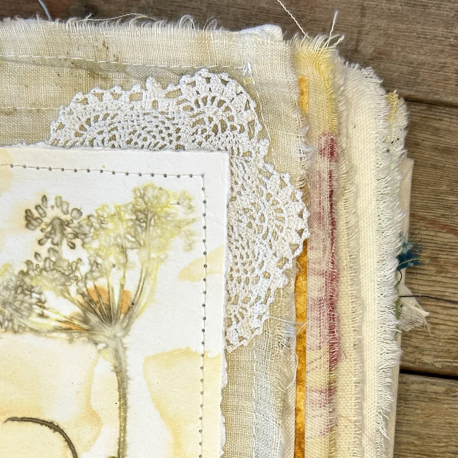 Build a handmade textile journal designed to hold your small art, photos, and tiny stories.